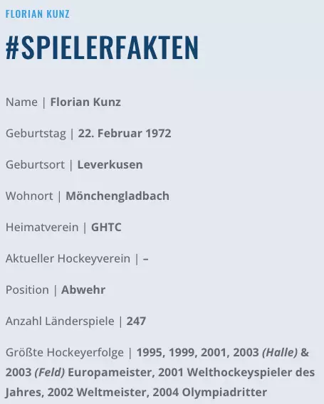 Kunz – Ex-Kapitän der Hockeynationalmannschaft, fünffacher Europameister, Weltmeister und Welthockeyspieler!