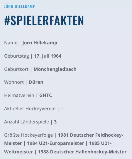Er konnte gerade laufen, da stand er schon auf dem Platz! Hockey liegt ihm wortwörtlich im Blut – sein Großvater war Mitbegründer des GHTC. Er selbst wurde 1984 mit der U21-Hockey-Nationalmannschaft in Rom Europameister. Ein Jahr später folgte der Weltmeistertitel mit der U21 im kanadischen Vancouver. Auch mit dem GHTC fuhr Hillekamp viele Titel ein: 1981 wurde er mit dem GHTC nach einem klaren 5:1-Sieg Deutscher Meister auf dem Feld. Sieben Jahre später holte sich Jörn Hillekamp den gleichen Titel in der Halle. Auch nach seiner spielerischen Karriere ist er dem Sport treu geblieben: Bis 2008 war er Mannschaftsarzt der Deutschen Junioren Hockey-Nationalmannschaft. Heute ist leitender Chefarzt am St.-Augustinus-Krankenhaus für Orthopädie und Unfallchirurgie in Düren und setzte bereits dem Borussia-Idol Herbert „Hacki“ Wimmer eine neue Hüfte ein.