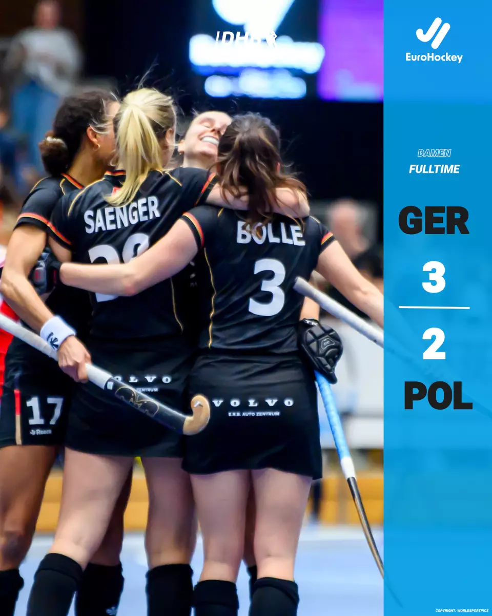 Die deutsche Hockey-Nationalmannschaft der Damen ist Europameister! Im Finale im ausverkauften Berliner Horst-Korber-Sportzentrum besiegte das Team von Bundestrainer Dominic Giskes und Co-Trainer Markus Weise Polen auf dramatische Weise mit 3:2 (1:1). Für Deutschland trafen vor 3.000 Zuschauern Elisa Gräve und Laura Saenger. Saenger war es auch, die mit abgelaufener Spielzeit eine Strafecke zum deutschen Siegtreffer verwandelte. Die deutsche Hockey-Nationalmannschaft der Damen ist nach der Hallen-Europameisterschaft 2022 in Hamburg zum zweiten Mal in Folge Hallen-Europameister. Nach dem Erfolg der deutschen Herren vor einer Woche in Leuven (Belgien) darf sich Deutschland Doppel-Europameister in der Halle nennen. Auch aus organisatorischer Sicht zieht der Deutsche Hockey-Bund ein positives Fazit.