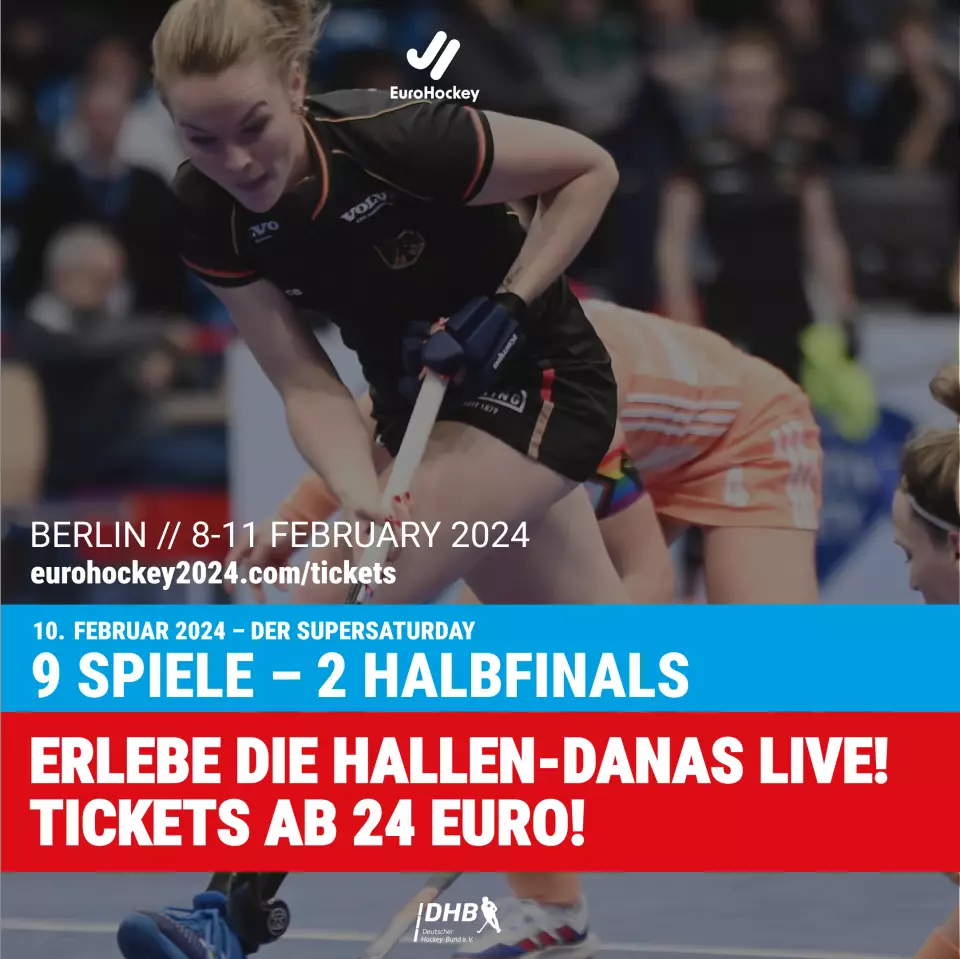 Am Donnerstag (08. Februar 2024) beginnt im Horst-Korber-Sportzentrum in Berlin die Hallenhockey-Europameisterschaft der Damen. Der Finaltag (11. Februar 2024) ist bereits ausverkauft. Für alle anderen Tage könnt ihr euch noch Tickets sichern! Hier erfahrt ihr alles über euer Ticket und den passenden Rabatt für das Hallenhockey-Spektakel in Berlin.